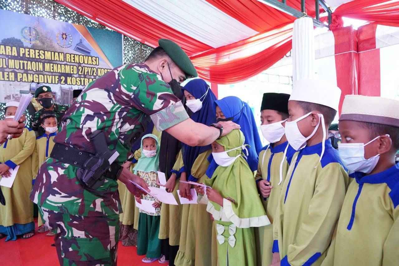 “Masjid Baitul Muttaqin ini dibangun berdasarkan skala prioritas kebutuhan Satuan, untuk itu saya minta kepada seluruh warga Menarmed 2 Kostrad untuk senantiasa memelihara dan merawat Masjid ini dengan baik.” Pungkasnya.