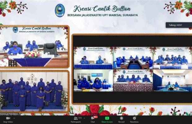 Jurnalline.com, TNI AL. Koarmada II. Surabaya – Dalam rangka mengembangkan keterampilan dan kreatifitas seni didalam organisasi Jalasenastri , Ketua Daerah Jalasenastri Armada II Ny. Dewi Iwan Isnurwanto beserta Pengurus DJA II mengikuti pelatihan keterampilan membuat aneka Kreasi Bullion yang digelar secara virtual ,bertempat di Gedung R5 Jalasenastri Daerah Armada II, Kamis (9/11).