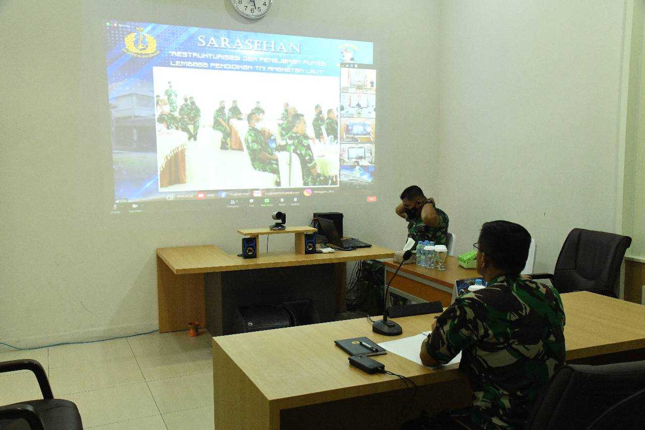 Wagub AAL Brigjen TNI (Mar) Edy Prakoso yang dalam hal ini mewakili Gubernur AAL Laksda TNI Denih Hendrata, mengikuti sarasehan secara daring (dalam jaringan) melalui Video Conference (Vicon) di ruang Vicon Mako AAL gedung R. Soebijakto, Kesatrian AAL, Bumimoro, sementara itu Seklem AAL Laksma TNI Syamsul Rizal, Dirrenbang AAL Kolonel Laut (P) Edhy Supriyono dan Dirdik AAL Kolonel Laut (P) Friche Flack hadir dalam acara sarasehan di STTAL.