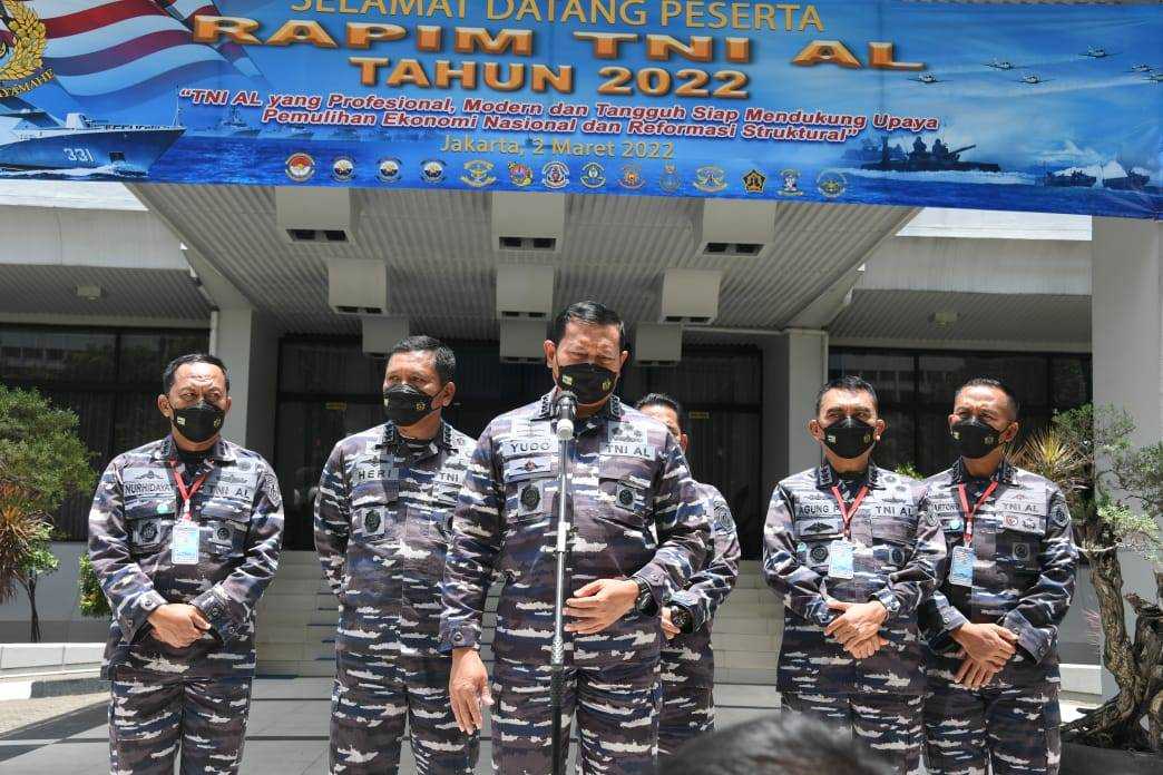 Rapim TNI AL Tahun 2022 ini dipimpin Kepala Staf Angkatan Laut (Kasal) Laksamana TNI Yudo Margono, S.E., M.M., yang dikuti oleh seluruh Pimpinan Kotama dan Satker dijajaran TNI AL dengan mengusung tema “TNI AL yang Profesional, Modern dan Tangguh Siap Mendukung Upaya Pemulihan Ekonomi Nasional dan Reformasi Struktural”.