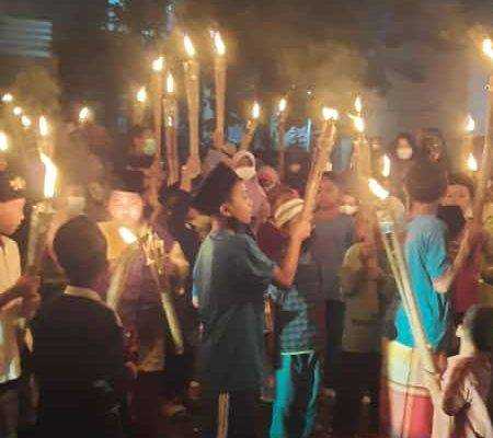 Alhamdilillah warga kami begitu antusiasnya untuk ikut melakukan pawai obor tersebut dan pemuda mushola al muhlisin kelurahan gondrong kata’ Rw zakaria
