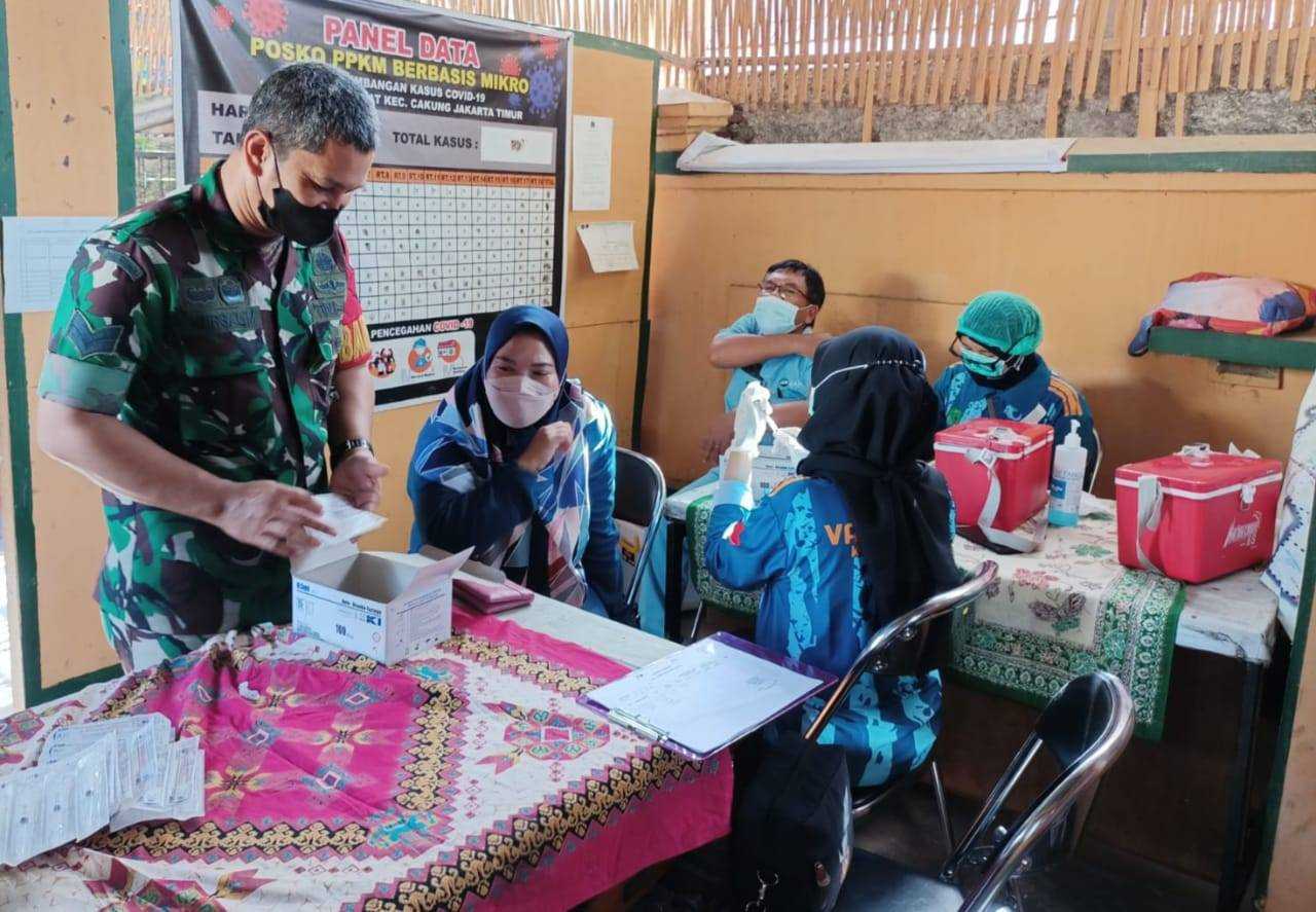 Penyelenggaraan serbuan vaksinasi diwilayah Cakung barat yang di gelar oleh Koramil 06 Cakung yang bekerja sama dengan Nakes Kesdam yang dipimpin oleh dr. Alia Salvira, Lurah Cakung Barat, perangkat RT/RW, Dasawisma dan FKDM.
