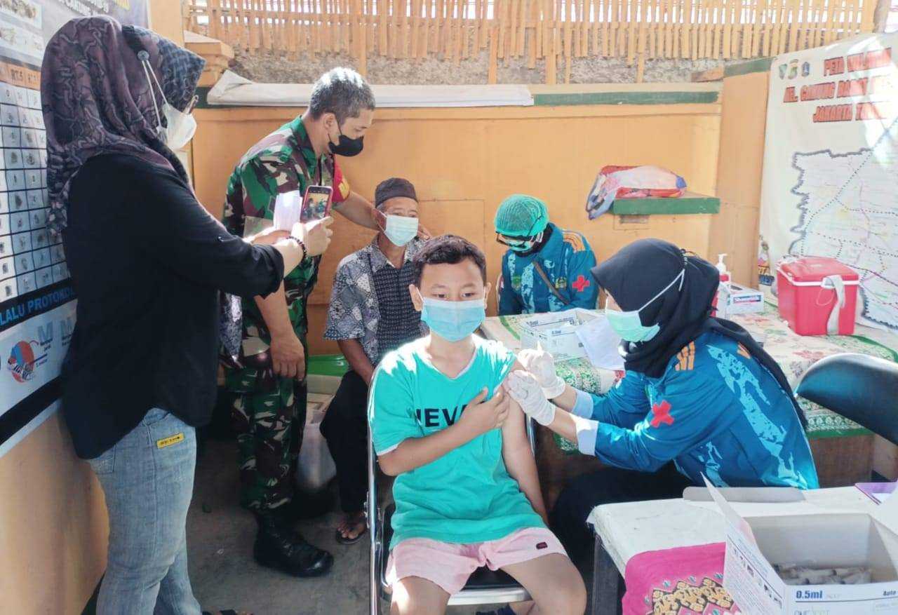 Pencapaian serbuan vaksinasi yang dilaksanakan oleh Koramil 06/Cakung di halaman Kelurahan Cakung barat ini menargetkan 350 dosis, khusus Dosis-2 dan Dosis-3 Booster.