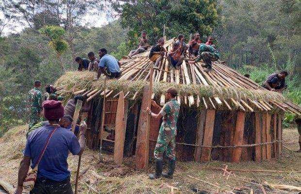 Lebih lanjut dikatakan, setelah berkomunikasi dengan tokoh masyarakat setempat, Prajurit Pos Tima Satgas Yonif MR 412 Kostrad bersama masyarakat bergerak cepat mengumpulkan bahan-bahan material yang dibutuhkan dan mulai membangun Honai Mama Tabuni.
