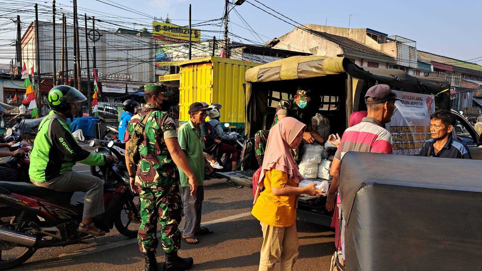 Jurnalline.com, Kodam Jaya, Kota Bekasi –Sebanyak 200 paket nasi, 100 minuman dingin, dan 2 dus air mineral disalurkan kepada masyarakat oleh koramil 02/Pondok Gede yang bekerjasama dengan Yayasan Amal Putra Ibu Pertiwi (YAPIP), Jumat (26/8/2022).