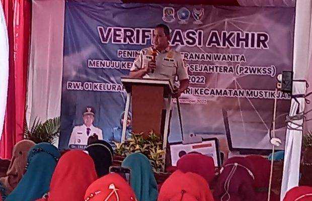 Dengan adanya hal tersebut Plt Walikota Bekasi didampingi isteri dan para Stafnya menghadiri acara Verifikasi Akhir Pemberdayaan Perempuan Dan Perlindungan Anak Dan Keluarga Berencana P2WKSS Th 2022, yang bertempat di lapangan Kelurahan jalan Swadaya Rt.03/01 Kel.Mustikasari, Kec.Mustikajaya, Kota Bekasi.