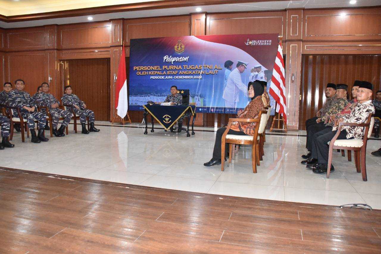 “Penting untuk kita pahami bersama, bahwa memasuki masa purna bhakti bukanlah akhir segalanya. Fase ini hanyalah transisi dari mengabdi secara aktif dalam dinas TNI Angkatan Laut menuju pengabdian dengan cara lain di tengah-tengah masyarakat. Untuk itu, Bapak Ibu harus mempertahankan jati diri dan karakter insan Jalasena yang berbudi baik, disiplin, ramah tamah, peduli dengan lingkungan sekitar, serta menjadi teladan dalam sikap sederhana, serta menjadi pelopor untuk mengatasi berbagai permasalahan yang dihadapi rakyat di sekelilingnya.” ungkap Kasal