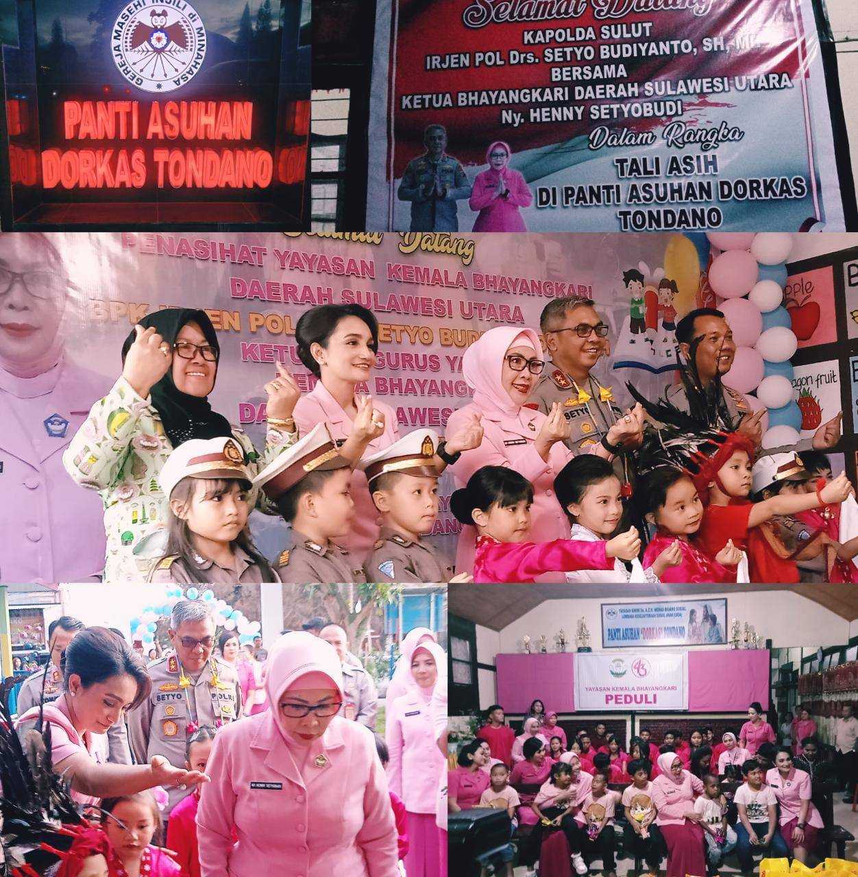 “Pada pembagian tali asih langsung oleh Ketua Bhayangkari dan Kapolda nampak diiringi tepuk tangan anak-anak panti sangat bergembira dapat perhatian dari Kapolda Sulut dan Kapolres Minahasa tersebut.”