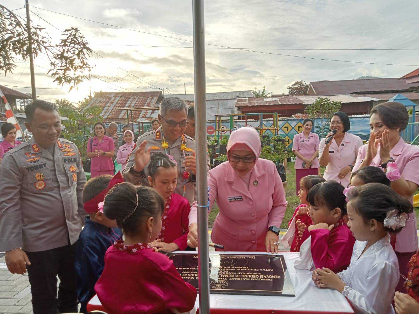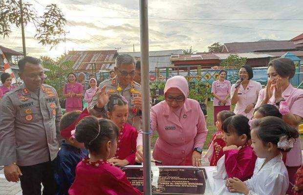 Ketua Bhayangkari Ny Henny Setyobudi bersama Kapolres Minahasa AKBP Tommy Bambang Souissa bersama didampingi Ny. Melda Souissa, melaksanakan anjangsana di yayasan TK Kemala 04 dan Tali Asih di Panti Asuhan Dorkas Tondano Senin (27/2/2023).