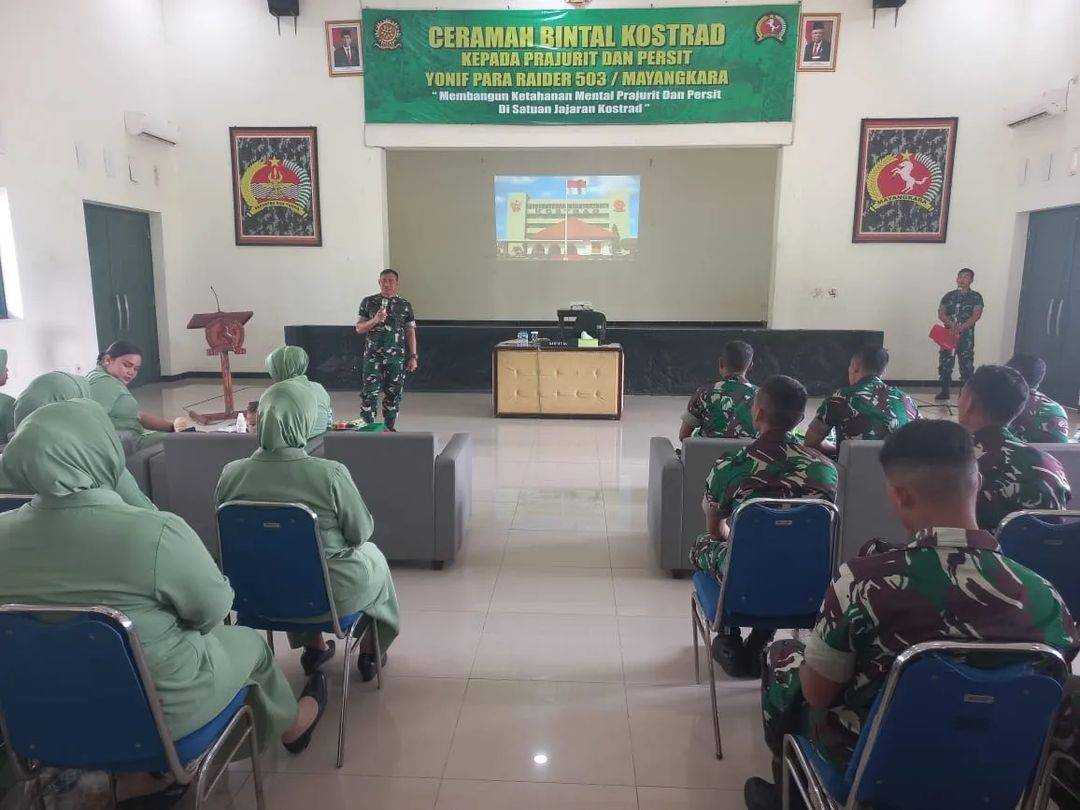“Dalam pelaksanaan tugas prajurit dan Persit beserta keluarganya sangat penting mendapatkan pembinaan mental untuk menjamin seluruh kegiatan/tugas dilaksanakan secara optimal yang didukung mental yang tangguh,” ujar Kabintal Kostrad.