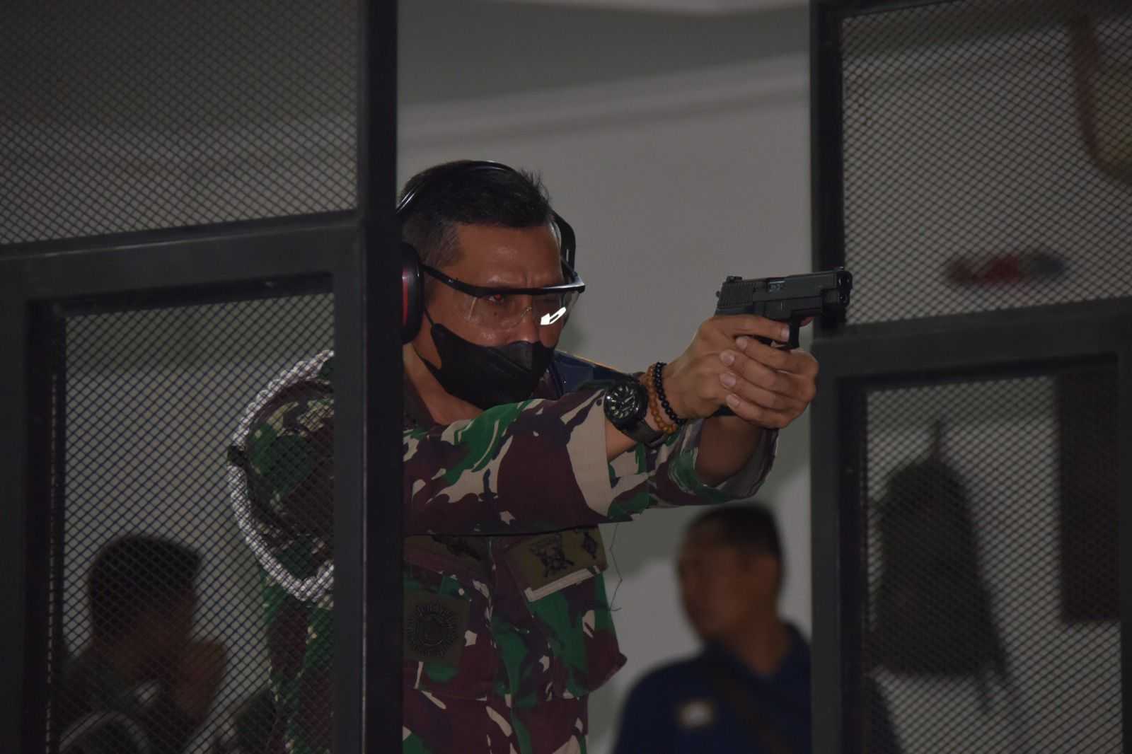 Jurnalline.com, Jakarta – Membidik dan menembak sasaran dengan tepat bukanlah perkara mudah, dibutuhkan konsentrasi serta fokus pada obyek yang dituju. Oleh karena itu, untuk mendapatkan hasil yang optimal dalam mengenai sasaran dengan tepat dibutuhkan latihan secara berkala dan terus menerus. Hal tersebut menjadi dasar bagi Prajurit Pomal Kolinlamil yang melaksanakan latihan menembak pistol di Lapangan Tembak Setiyono, Puspomal, Kelapa Gading, Jakarta Utara, Rabu (24/5). Beberapa jenis senjata yang digunakan meliputi Sig Sauer, G2 Combat dan Tanfoglio.
