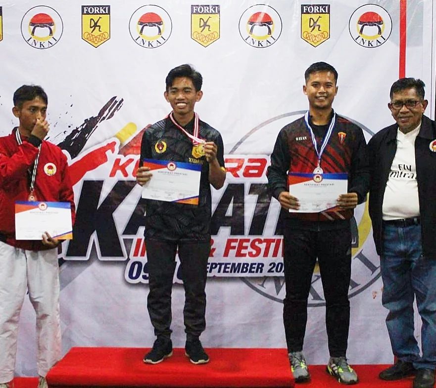 - M. Ibnu anak dari Sertu Rojail, Juara 1 pada kelas Kumite Kadet under 54 Kg