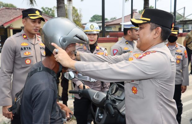 Jurnalline.com, Serang (Banten) – Pada Jum’at (15/09), mulai pukul 12:30 WIB, Kapolres Serang, AKBP Wiwin Setiawan S.IK., MH, memimpin kegiatan pembagian helm dan nasi kotak kepada masyarakat pengguna jalan di depan Mako Polsek Kragilan. Kegiatan ini merupakan bagian dari Operasi Zebra Maung tahun 2023 yang bertujuan untuk meningkatkan kesadaran keselamatan berlalu lintas.