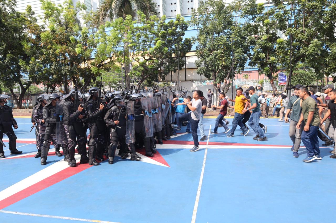 Jurnalline.com, Jakarta, – Sebagai wujud kesiapan pengamanan Pemilihan Umum (Pemilu) 2024, TNI Angkatan Laut (TNI AL) yakni Lantamal III Jakarta melaksanakan manuver lapangan guna melatih para prajurit untuk menghadapi situasi terburuk yang mungkin terjadi dalam Pemilu 2024 bertempat di Markas Komando Lantamal III Jakarta, Jakarta Utara pada Senin (20/11). Pelaksanaan dengan melatihkan berbagai skenario tersebut guna memastikan Pemilu berjalan tertib dan aman ini merupakan salah satu wujud kesiapan TNI AL dalam mendukung pesta demokrasi Indonesia.