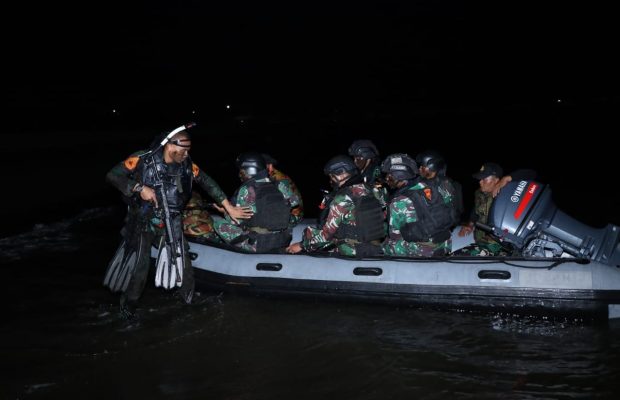 Jurnalline.com, AAL, Surabaya – Latihan praktek (Lattek) Bhumyamca Yudha yang diikuti 13 Taruna Akademi TNI Angkatan Laut (AAL) Korps Marinir Tingkat IV Angkatan ke-69, bersama dengan satuan pendukung dari Yonif-5 dan Pasmar-2, melaksanakan materi Pendaratan Khusus (Ratsus) dengan menggunakan 4 unit perahu karet yang diangkut dengan KRI TLE-517 di daerah latihan Situbondo, Jawa Timur, Jumat (15/12).