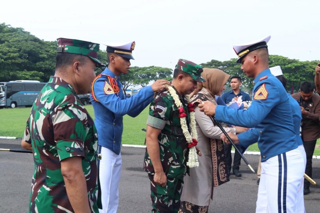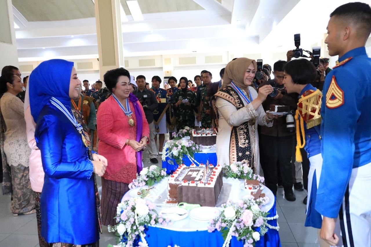 Pengukuhan Ibu Kehormatan Taruna Akademi TNI ditandai dengan Pengalungan Medali dan menyerahkan Stik Penatarama kepada Penatarama I Taruna Akademi TNI Angkatan Laut (AAL) atas nama Sermatutar (T) Muhammad Rizky Aryananda.