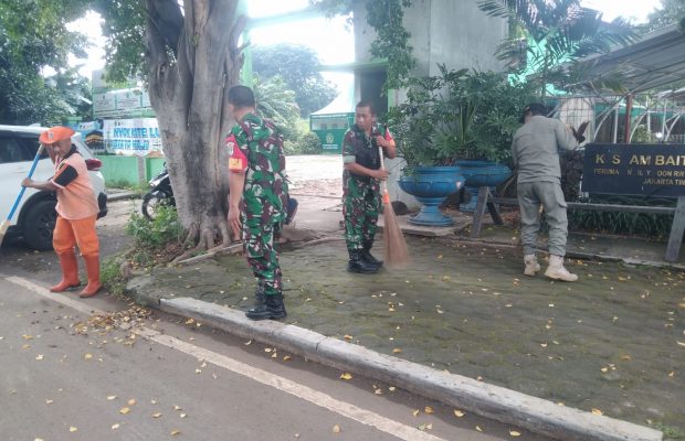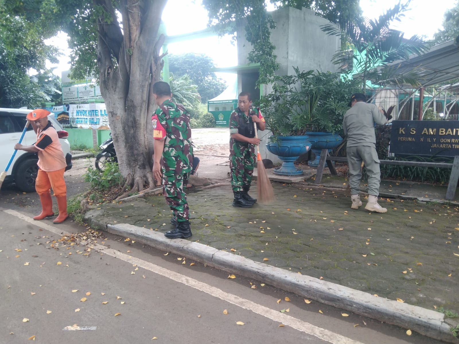 Babinsa Koramil Duren Sawit Bersama PPSU dan Warga Bersihkan Lingkungan