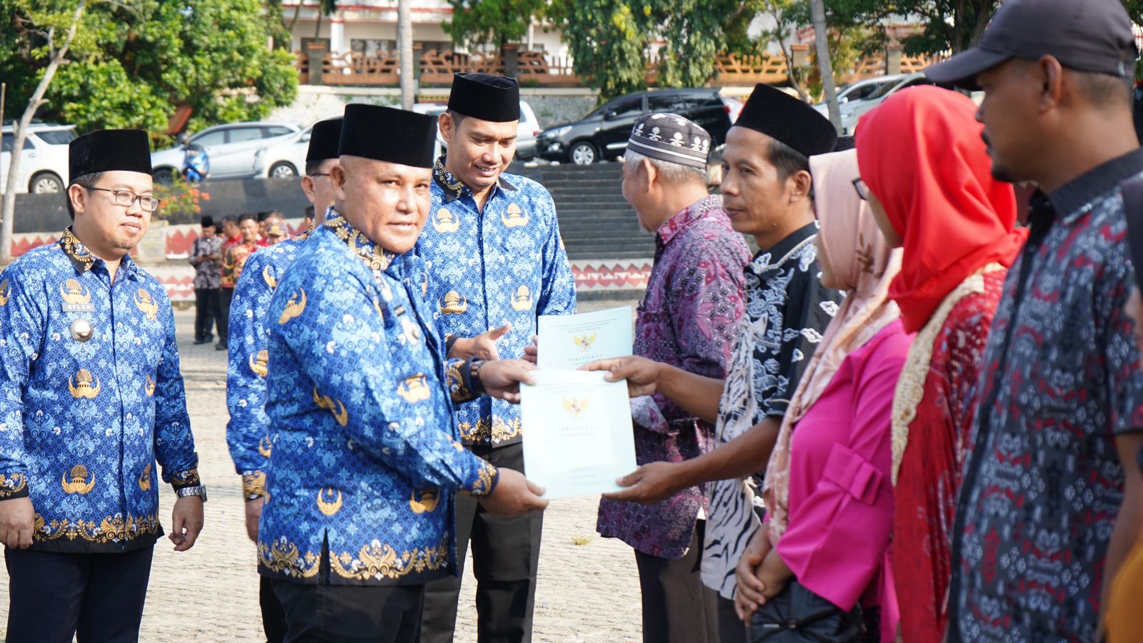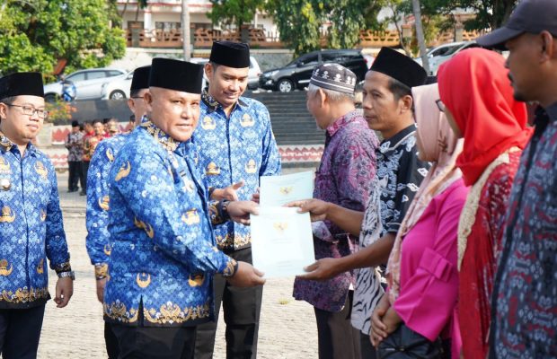 Jurnalline.com, Lampung Selatan – Sebanyak 14 warga Lampung Selatan penerima bantuan bedah rumah dari program gerakan seribu rupiah (Geserbu), menerima sertifikat tanah gratis dari pemerintah daerah bekerjasama dengan Badan Pertanahan Nasional (BPN) Kabupaten Lampung Selatan. Penyerahan sertifikat tersebut langsung dilakukan oleh Bupati Lamsel H. Nanang Ermanto pada saat upacara bulanan yang digelar di Lapangan Korpri Kalianda, Rabu (17/4/2024).