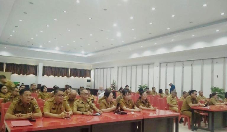 Turut hadir dalam rapat tersebut, Asisten 1 Bidang Pemerintahan dan Kesra Drs. Riviva Maringka, M.Si, Asisten II Bidang Perekonomian dan Pembangunan Ir. Wenny Talumewo, M.Si, Para Kepala OPD, Serta Jajaran Pemerintah Kabupaten Minahasa. (EffendyIskandar)