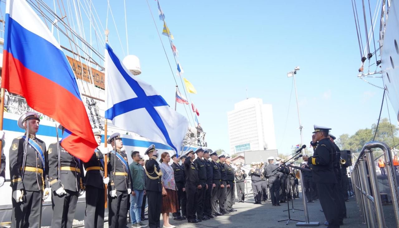 Commander Officer of Varyag 011 1st rank Captain Konstantin Petrov, Athal Kolonel Laut (T) Febri Yakob Paruntu dan para prajurit Russian Navy melepas langsung keberangkatan KRI Bima Suci untuk melanjutkan pelayaran selama tujuh hari pada etape kedelapan, yang rencananya akan tiba di Jepang pada 1 Oktober 2024 mendatang.