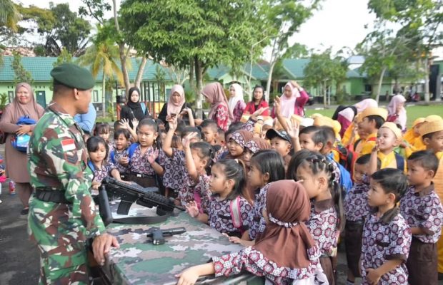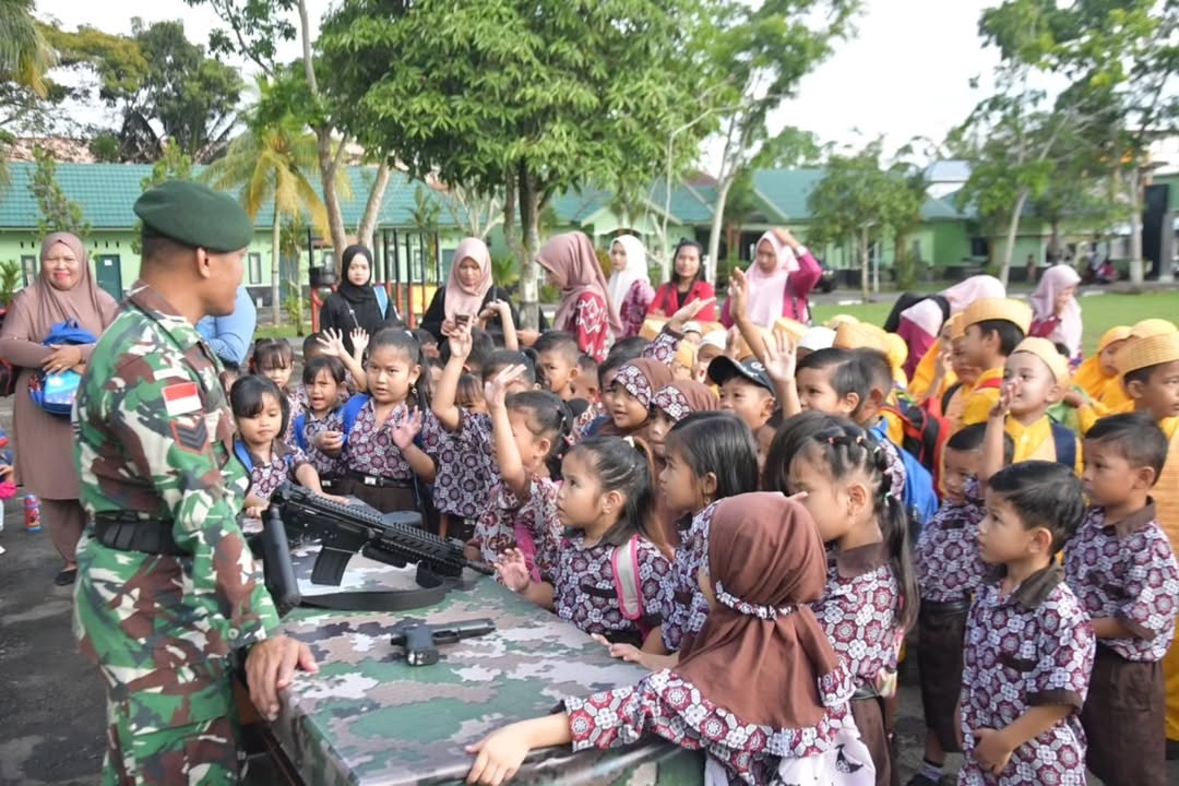 Selain pengenalan, anak-anak juga mengikuti tanya jawab interaktif dan aktivitas ringan khas prajurit, serta mendapatkan edukasi tentang persatuan bangsa. Kegiatan berlangsung meriah dan penuh semangat.