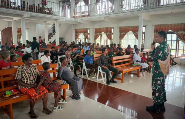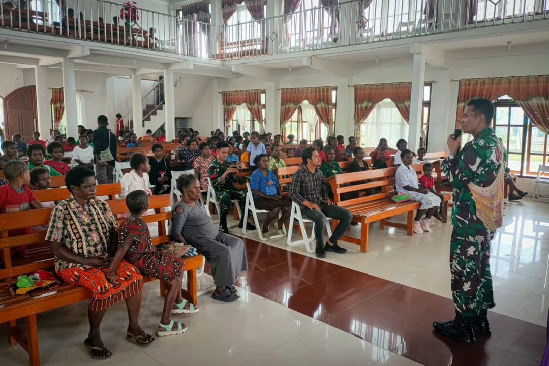 Jurnalline.com, Jakarta – Satgas Pamtas Mobile RI-PNG Yonif 503 Kostrad memberikan bermacam – macam bingkisan kepada jamaah Gereja Geliat di Distrik Kenyam, Kabupaten Nduga Papua. Minggu (19/01/2025).