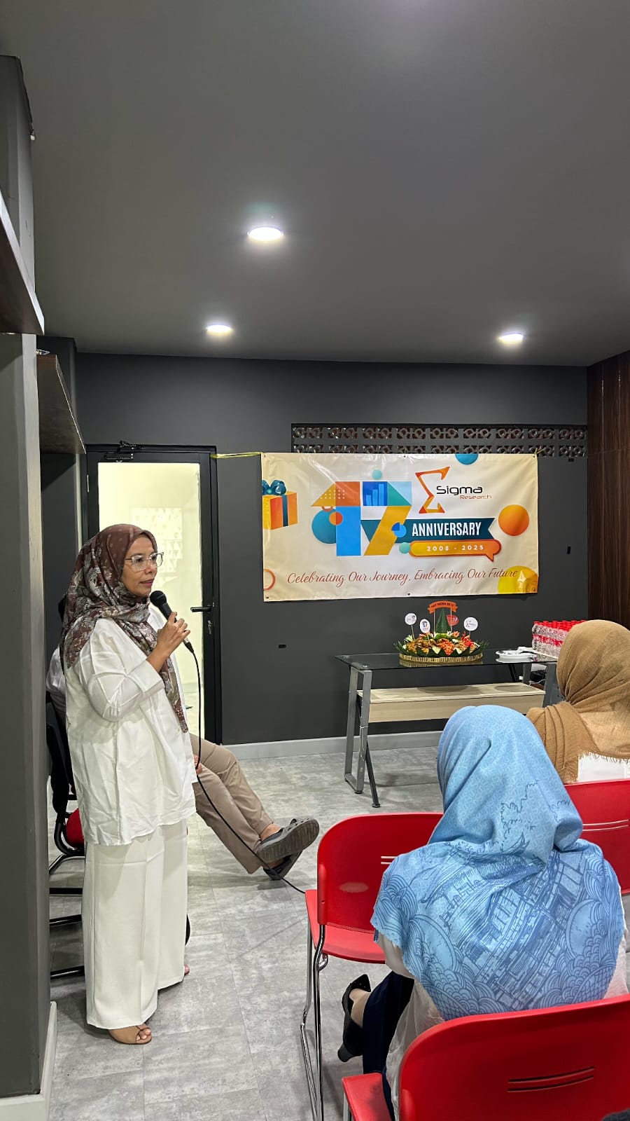 Sigma Research Indonesia sendiri telah memiliki pengalaman dalamrencana jangka panjang pelatihan dan pelatihan perusahaan,” tambah Nurjannah.Gratis Konsultasi di Selama Perayaan 17th Anniversary Sigma Research IndonesiaMerayakan 17 tahun perjalanan sebagai mitra riset terpercaya, Sigma Research Indonesiamenghadirkan program Promo Free Consultation yang berlaku pada 22 Januari – 22Februari 2025. Program tersebut dapat dimanfaatkan langsung oleh para pemimpinperusahaan untuk bebas berkonsultasi secara gratis guna mendapatkan berbagai insightpenting yang dibutuhkan dalam pengambilan keputusan.