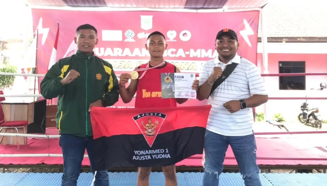 Jurnalline.com, Jakarta – Prajurit Yonarmed 1 Kostad kembali menorehkan prestasi gemilang di dunia olahraga bela diri. Pada ajang Kejuaraan IBCA MMA Malang Piala Gajahyana Tahun 2025, yang berlangsung pada tanggal 14-16 Februari 2025 di GOR Kanjuruhan Kabupaten Malang, Jawa Timur, prajurit tersebut berhasil meraih juara 1 pada kategori Tanding Kelas Senior 57kg TNI-Polri. Senin (17/02/2025).