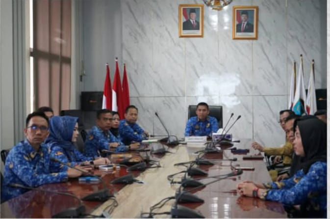 Bupati Panca Wijaya Akbar bersama jajaran Pemerintah Ogan Ilir secara seksama mengikuti rapat Koordinasi Penyelenggaraan Pemerintah Daerah yg Dirangkai dengan Penandatanganan Nota Kesepahaman tentang Sinergi Tugas dan Fungsi di Bidang Agraria/Pertanahan, Pemerintahan Dalam Negeri, Kehutanan, Transmigrasi dan Informasi Geospal serta Pemeriksaan Kesehatan Gratis dan Implementasi Program Tiga Juta Rumah secara Virtual. Senin (17/3/2025) Bertempat di Ruang Rapat Bupati KPT Tanjung Senai Indralaya.
