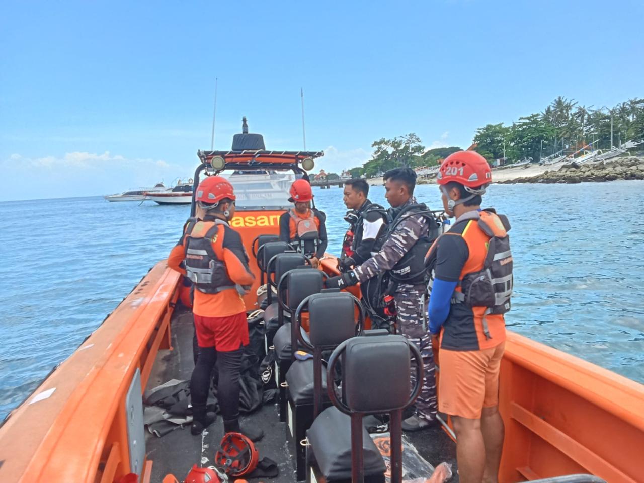 Pada siang harinya, pencarian di laut dimulai dengan menggunakan Rigid Buoyancy Boat (RBB) milik Basarnas dan penyelaman bawah laut. Prajurit Posal Nusa Penida turut terlibat langsung dalam upaya penyisiran area bawah laut bersama tim SAR. Hingga pencarian hari pertama dihentikan sementara, korban belum juga ditemukan.