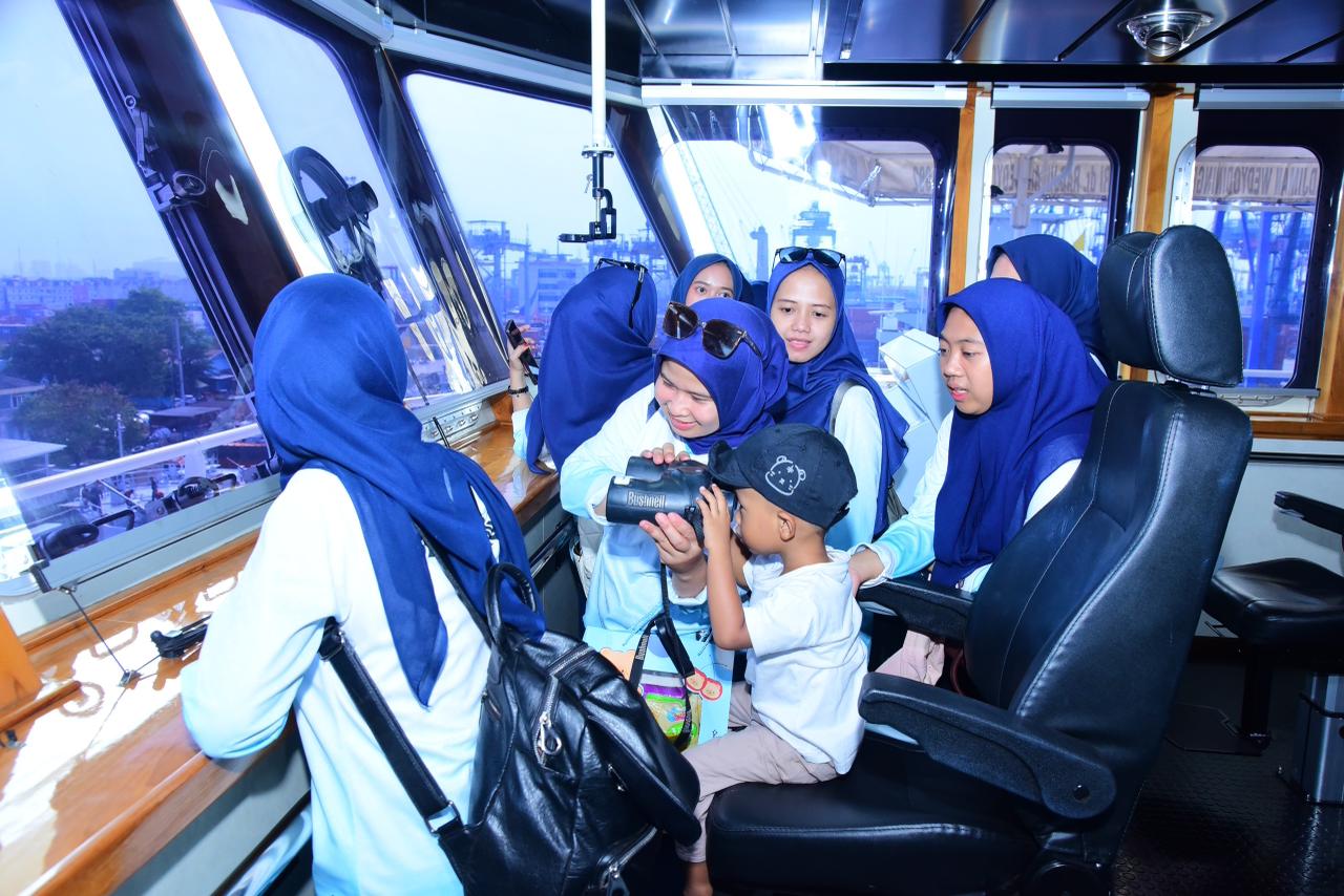 Sejak menjejakkan kaki di dermaga, wajah-wajah polos itu memancarkan kegembiraan. Dengan bimbingan para prajurit KRI RJW-992, mereka diajak berkeliling mengenal bagian-bagian kapal perang, mulai dari anjungan, ruang kemudi, hingga perlengkapan navigasi yang digunakan dalam pelayaran militer.