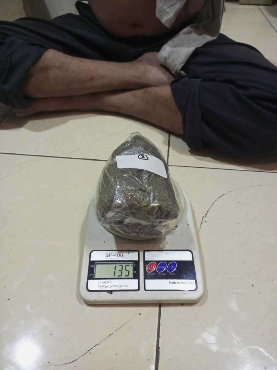 Selain ganja, polisi juga mengamankan sejumlah barang bukti lainnya, antara lain satu unit handphone merk Samsung, satu timbangan elektrik besar, dan satu kendaraan roda dua merk Honda Scoopy yang digunakan pelaku.