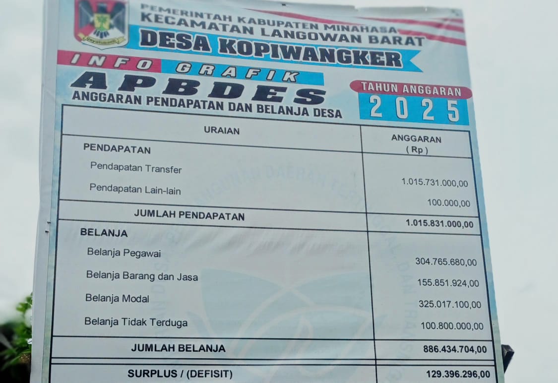 Jurnalline.com, Langowan (MINAHASA) — Memasuki tahap dua realisasi APBDes Kopi wangker kecamatan Langowan Barat, oleh Pemerintah Kabupaten Minahasa, Kecamatan Langowan Barat, Pemerintah Desa Kopiwangker mengumumkan