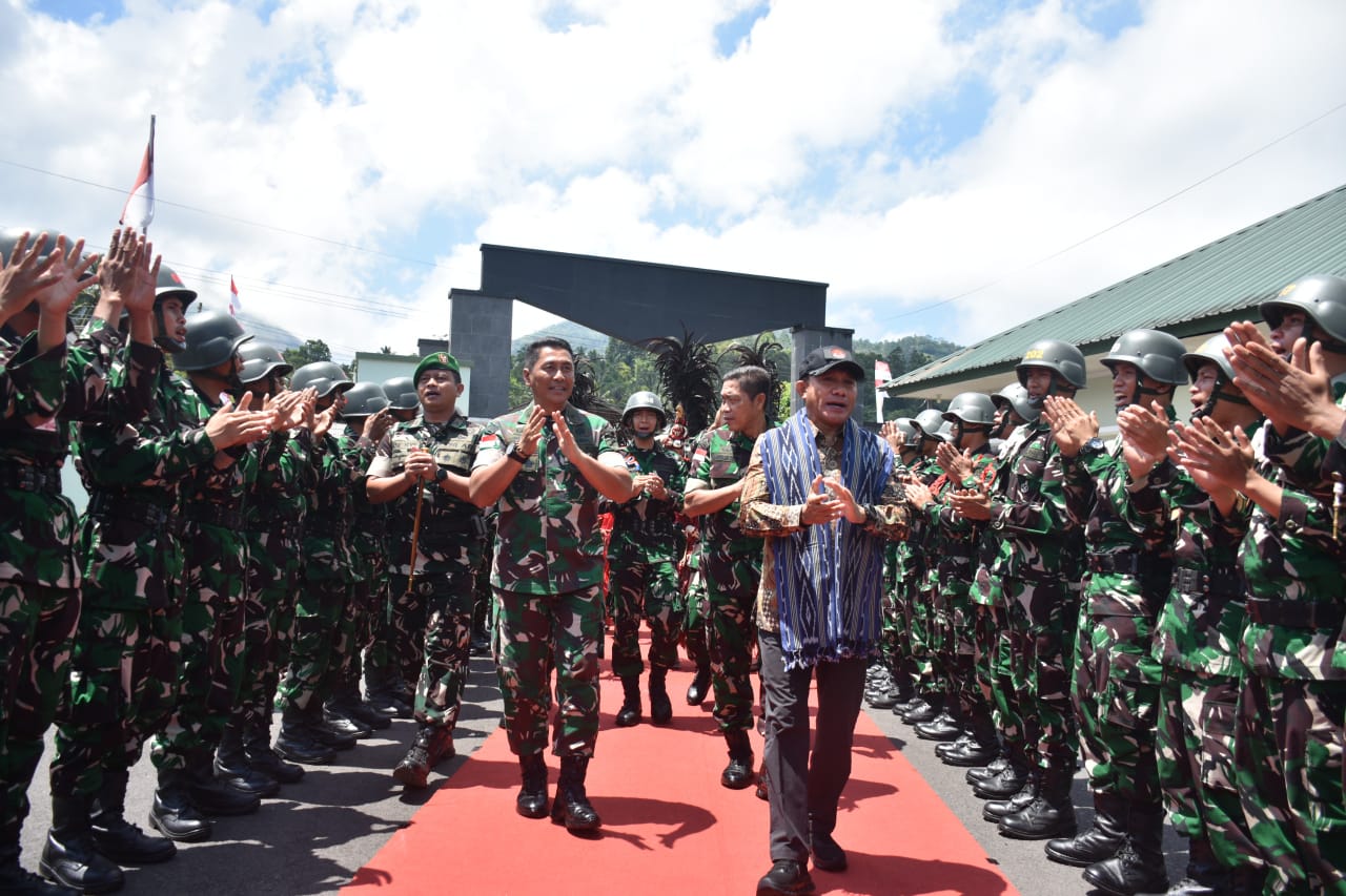 Sumpah Prajurit, dan 8 Wajib TNI sebagai pedoman dalam kehidupan dan pengabdian kepada bangsa. Letjen TNI Gabriel Lema juga menyampaikan kebanggaannya terhadap program ketahanan pangan yang dilaksanakan Satdik Komcad, seperti budidaya pepaya, cabai, kangkung, pokcai, serta ikan nila dan lele.