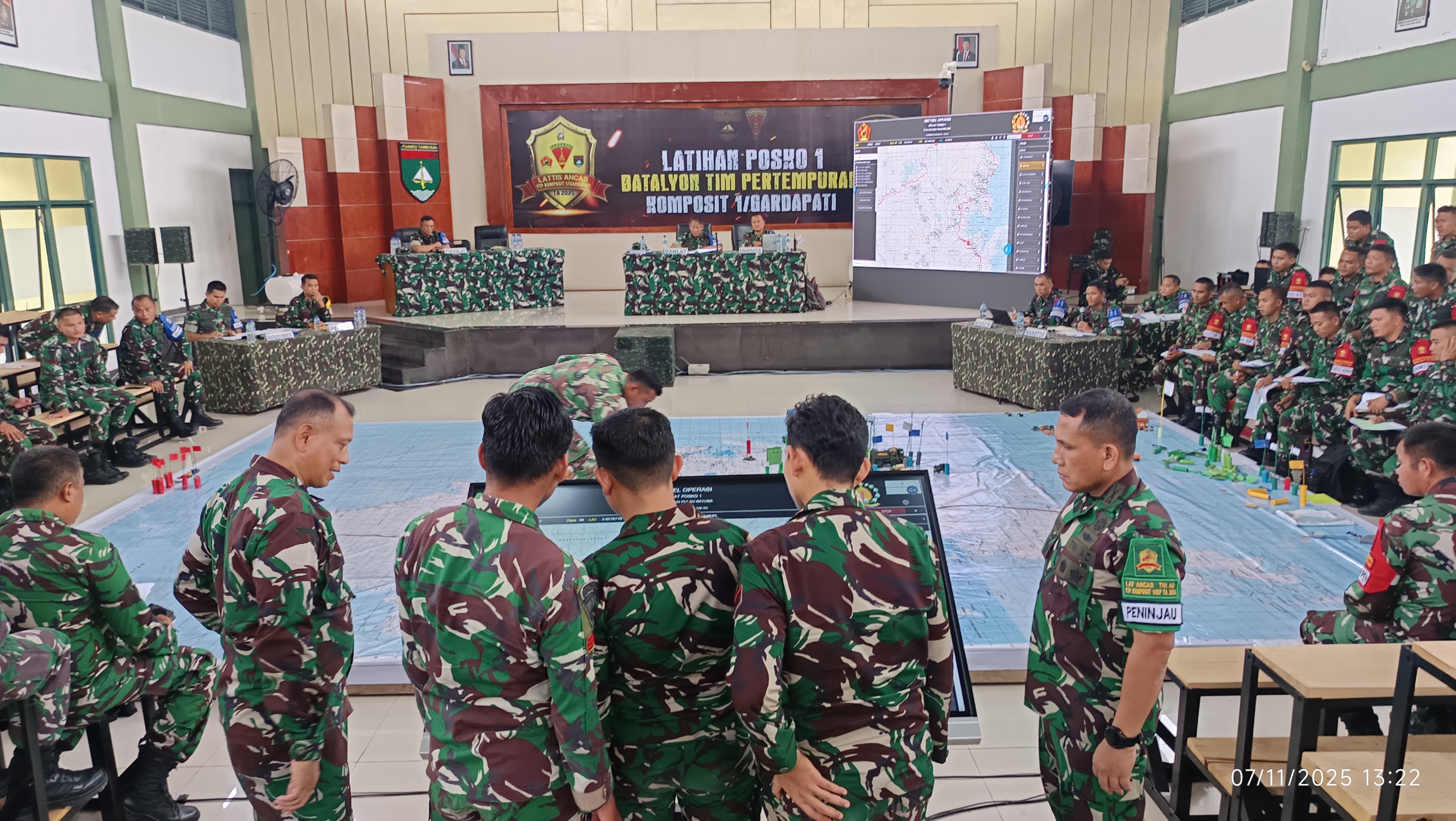 Jurnalline.com, Natuna – Pusat Simulasi Tempur (Pussimpur) Kodiklatad mendukung modernisasi latihan TNI AD melalui penerapan Meja Desain Operasi (MDO) pada kegiatan Tactical Floor Game (TFG) sebagai puncak Latihan Posko I (Latposko I) YTP Batalyon Komposit 1/Gardapati Kodam XIX/Tuanku Tambusai, Natuna, Jumat (7/11/2025).