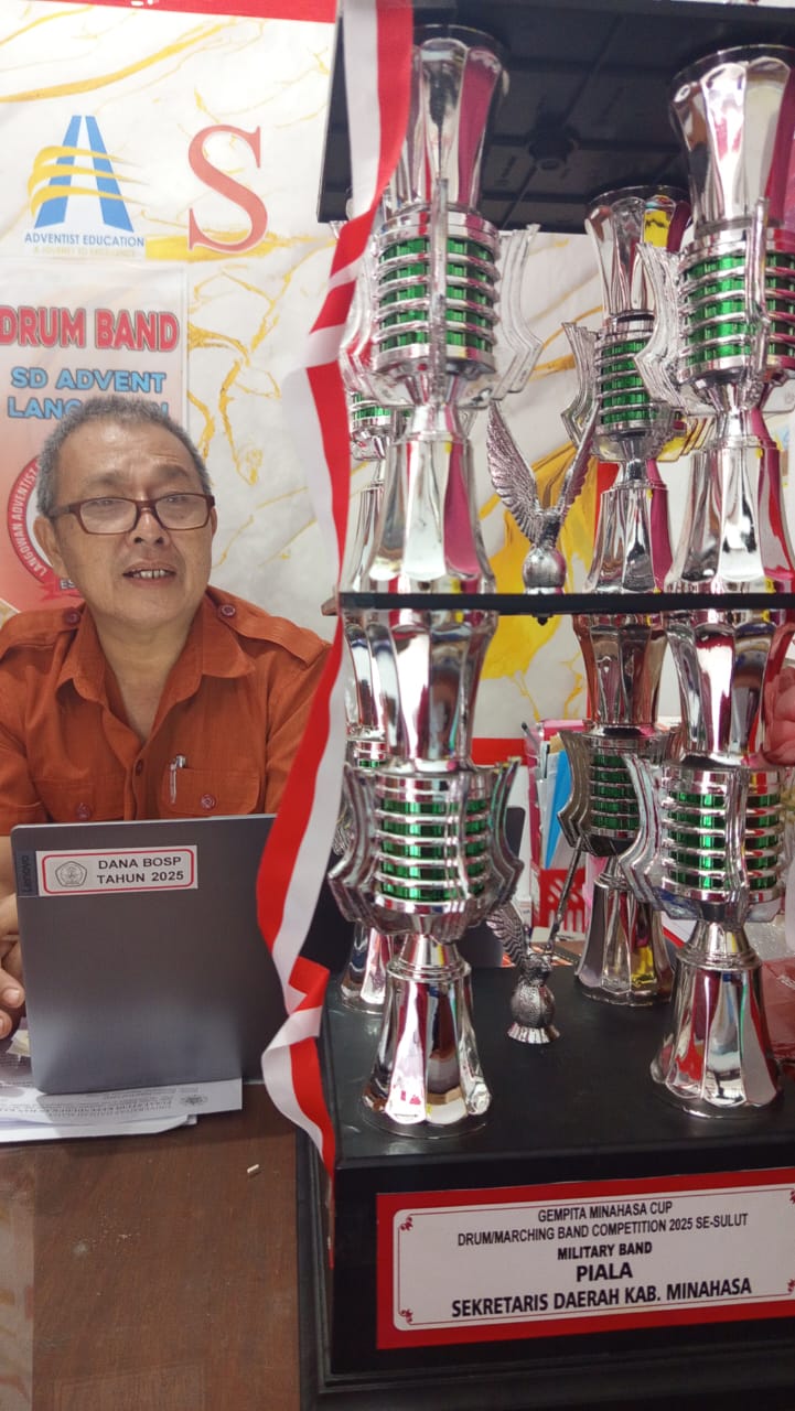 Jurnalline.com, Langowan — Kepala Sekolah SD Advent Langowan, Novry Sumual kepada wartawan media ini mengaku bangga dan bersyukur karena boleh meraih Gempita Minahasa Cup, Drum marching band “MILLITARY BAND”, Piala Sekretaris Daerah Kab. Minahasa.