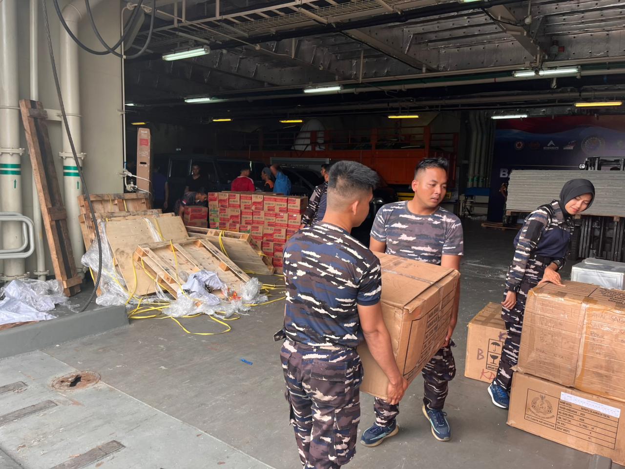 Adapun bantuan yang diturunkan meliputi kebutuhan pokok dan perlengkapan darurat seperti beras, mie instan, air mineral, biskuit, susu, minyak goreng, makanan siap saji, pakaian layak pakai, selimut, perlengkapan bayi, pampers dewasa dan anak, obat-obatan, hingga sarana pendukung darurat berupa jerigen air dan tabung gas LPG. Bantuan tersebut berasal dari berbagai pihak, antara lain AKABRI 84, AKABRI 2000, Yayasan CK7, Puspomal, Kementerian Pertahanan RI, tokoh masyarakat, komunitas sosial, serta satuan TNI AL.