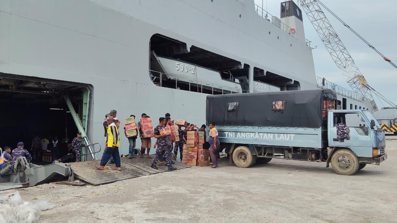 Kapal perang jenis Landing Platform Dock (LPD) tersebut sandar di Pelabuhan Krueng Geukueh, Kecamatan Muara Satu, Kota Lhokseumawe, Aceh, dengan membawa bantuan logistik bagi masyarakat terdampak bencana.