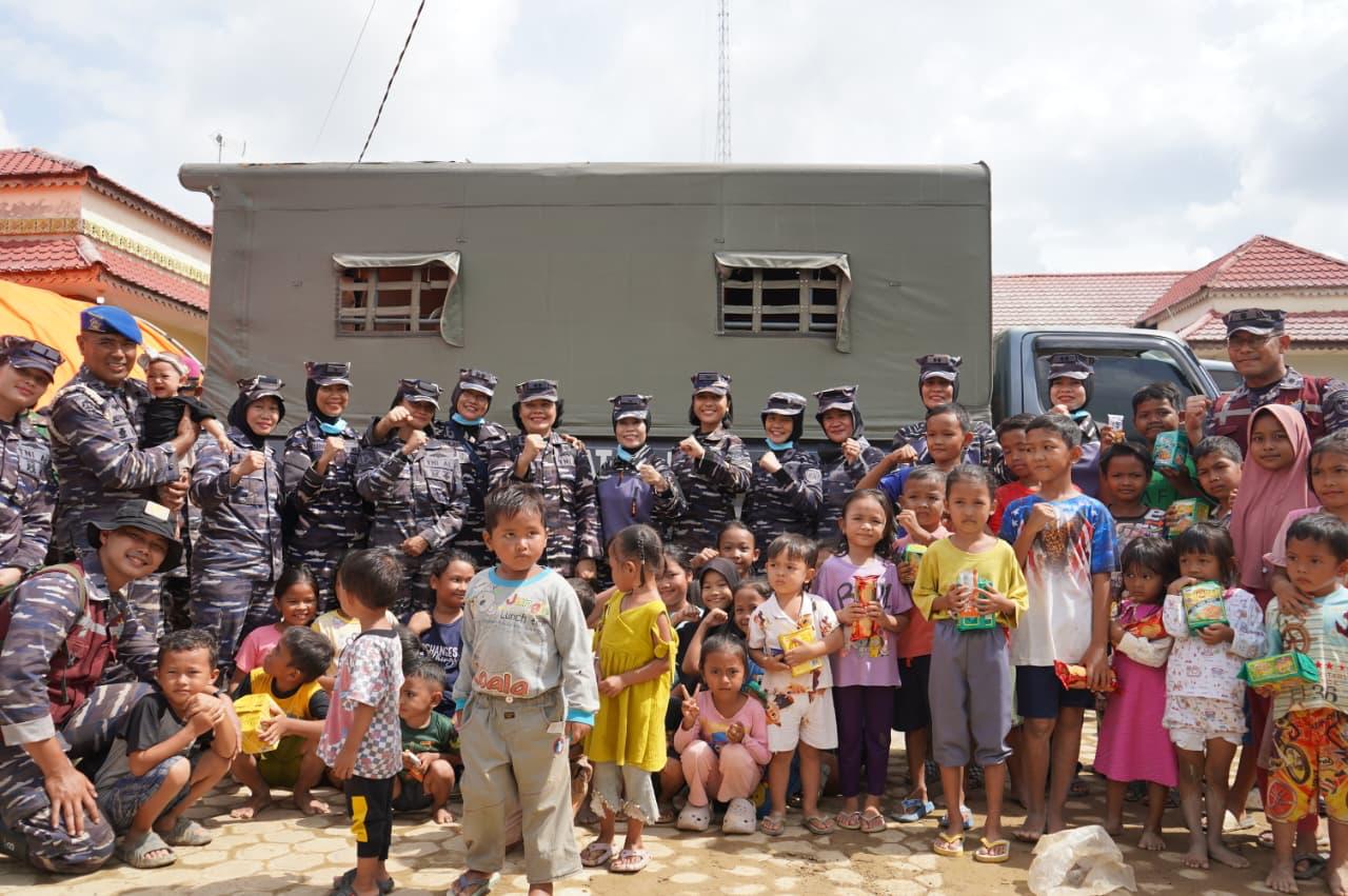 Dalam kesempatan ini, personel Dispsial yang terdiri dari Mayor Laut (KH) Junaid Ridha Akbar, M.Psi., Psikolog, Letda Laut (KH) Husni Mubarok, S.Psi., Letda Laut (KH) Satrio Putra Permana, S.Psi., dan Kls Ttg Ridho Yulira Bintan, bersama Laksma TNI Erna Fauziah dan Tim Kowal memberikan dukungan pelayanan Psikologis kepada Anak-anak daerah Banda Mulia dengan memberikan Play Theraphy yang diharapkan dapat memberikan kegembiraan dan kesenangan untuk mengurangi dampak traumatis yang dialami oleh anak-anak tersebut.