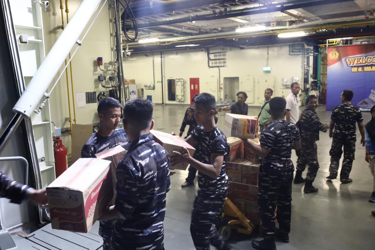 KRI RJW-992 yang membawa 179 personel onboard ini membawa bermacam-macam Bahan Kontak sebesar 190 Ton yang terdiri dari sembako, minuman, perlengkapan mandi, pakaian, selimut dan lain-lain untuk korban terdampak bencana.