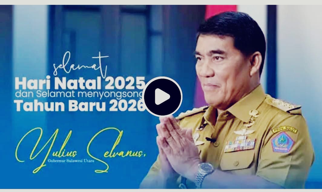 Atas nama Pemerintah Provinsi Sulawesi Utara serta pribadi dan keluarga, Gubernur Yulius Selvanus menyampaikan ucapan Selamat Hari Natal 2025 dan Selamat Tahun Baru 2026 kepada seluruh masyarakat.
