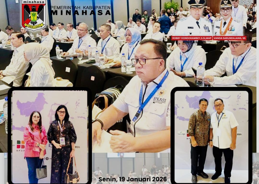 Turut hadir didampingi Ketua TP-PKK Kabupaten Minahasa Ny. Martina W. Dondokambey Lengkong, SE, bersama Sekretaris Daerah Kabupaten Minahasa Dr. Lynda D. Watania, MM, M.Si, mengikuti Rapat Kerja Nasional (Rakernas) XVII APKASI Tahun 2026 yang digelar di Ballroom Hotel Aston Batam, Provinsi Kepulauan Riau.