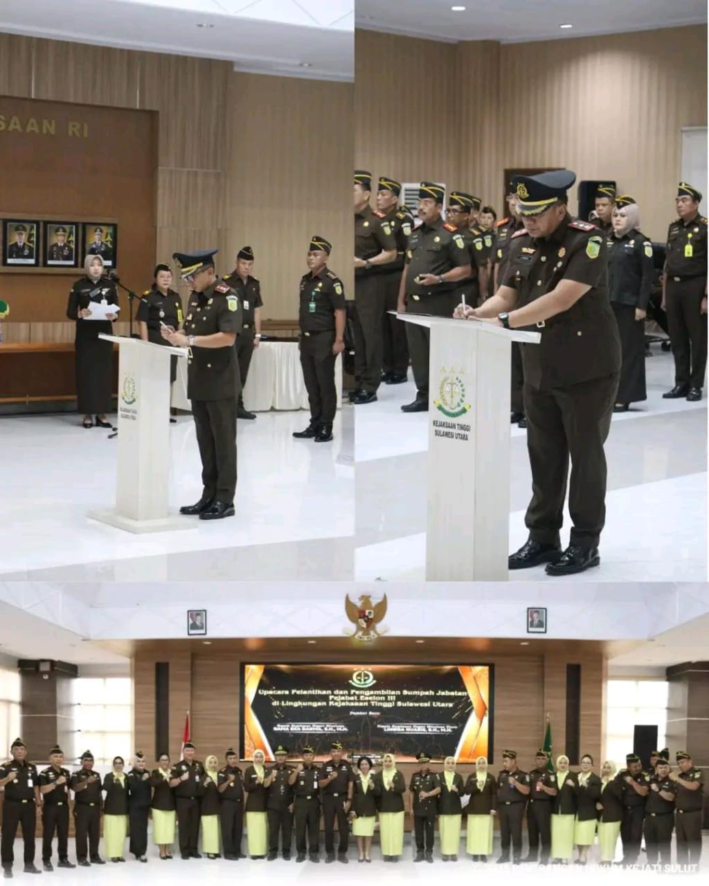Jurnalline.com, Manado – Kajati Sulut Jacob Hendrik Pattipeilohy, S.H., M.H. melantik Kajari Minahasa Utara Lingga Nuarie, S.H., dan Kajari Minahasa Rama Eka Darma, S.H., M.H.