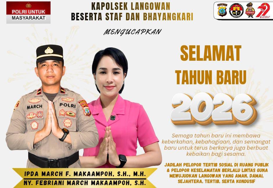Jurnalline.com, Langowan — Kapolsek Langowan IPDA March Faldry Makaampoh, SH,. MH,. Beserta Staf dan Bhayangkari beserta Keluarganya mengucapkan :