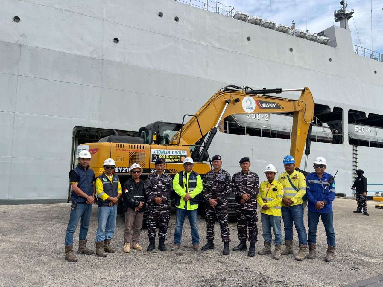 Sementara itu, Komandan KRI Makassar-590 Letkol Laut (P) Farid Ardiansyah, M.Tr.Opsla menjelaskan bahwa kapal perang jenis Landing Platform Dock (LPD) tersebut sandar di Lanal Kotabaru untuk melaksanakan embarkasi bantuan alat berat berupa excavator dan dump truck dari PT Jhonlin Group. Bantuan tersebut akan dikirimkan ke wilayah terdampak banjir di Aceh guna mempercepat pemulihan infrastruktur dan lingkungan.