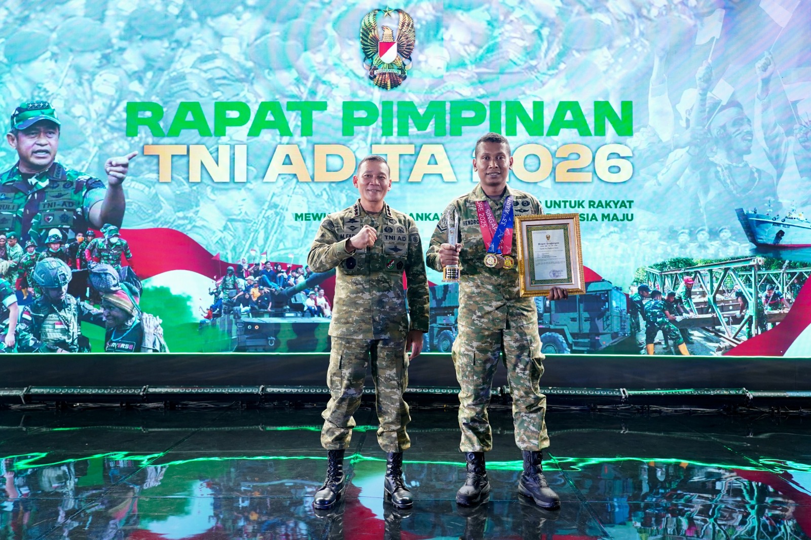 Jurnalline.com, Cilodong – Serda Hendro A. Birawa, prajurit Yonif 328 Kostrad, menerima penghargaan Kartika Awards atas prestasinya meraih medali emas dalam ajang ASEAN Armies Rifle Meet (AARM) ke-33 tahun 2025 yang diselenggarakan di Singapura. Penghargaan tersebut diberikan sebagai bentuk apresiasi atas capaian gemilang yang mengharumkan nama TNI AD dan Indonesia. Jumat (13/02/2026).