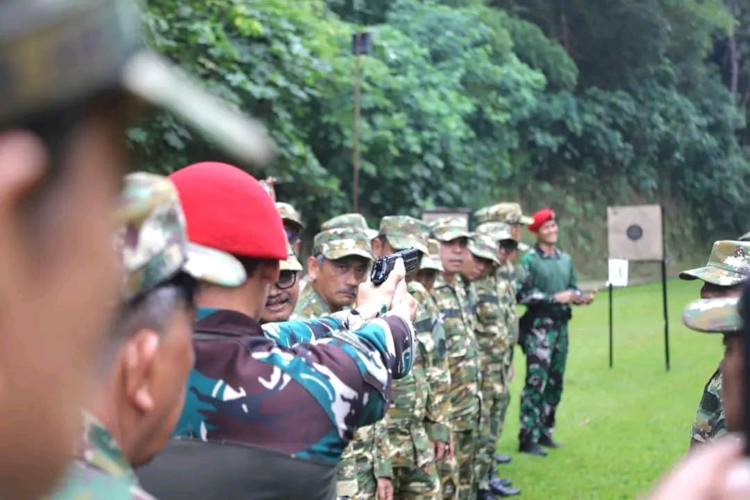 Pada hari terakhir Retret Persatuan Wartawan Indonesia (PWI), Kementerian Pertahanan Republik Indonesia membekali peserta dengan latihan menembak di Lapangan Tembak Pistol Bayu Aji dan Mirwariyadin, Batalyon 13 Grup 1 Kopassus, Bogor, Minggu (1/2).