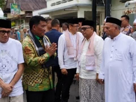 Sejak pagi, lorong-lorong kampung dipadati warga yang berjalan dari satu rumah ke rumah lainnya. Di setiap kediaman, imam dan tokoh agama memimpin rangkaian doa yang dilantunkan syahdu bersama alunan rebana hadroh, menciptakan harmoni antara lantunan spiritual dan keramahan khas Lebaran.