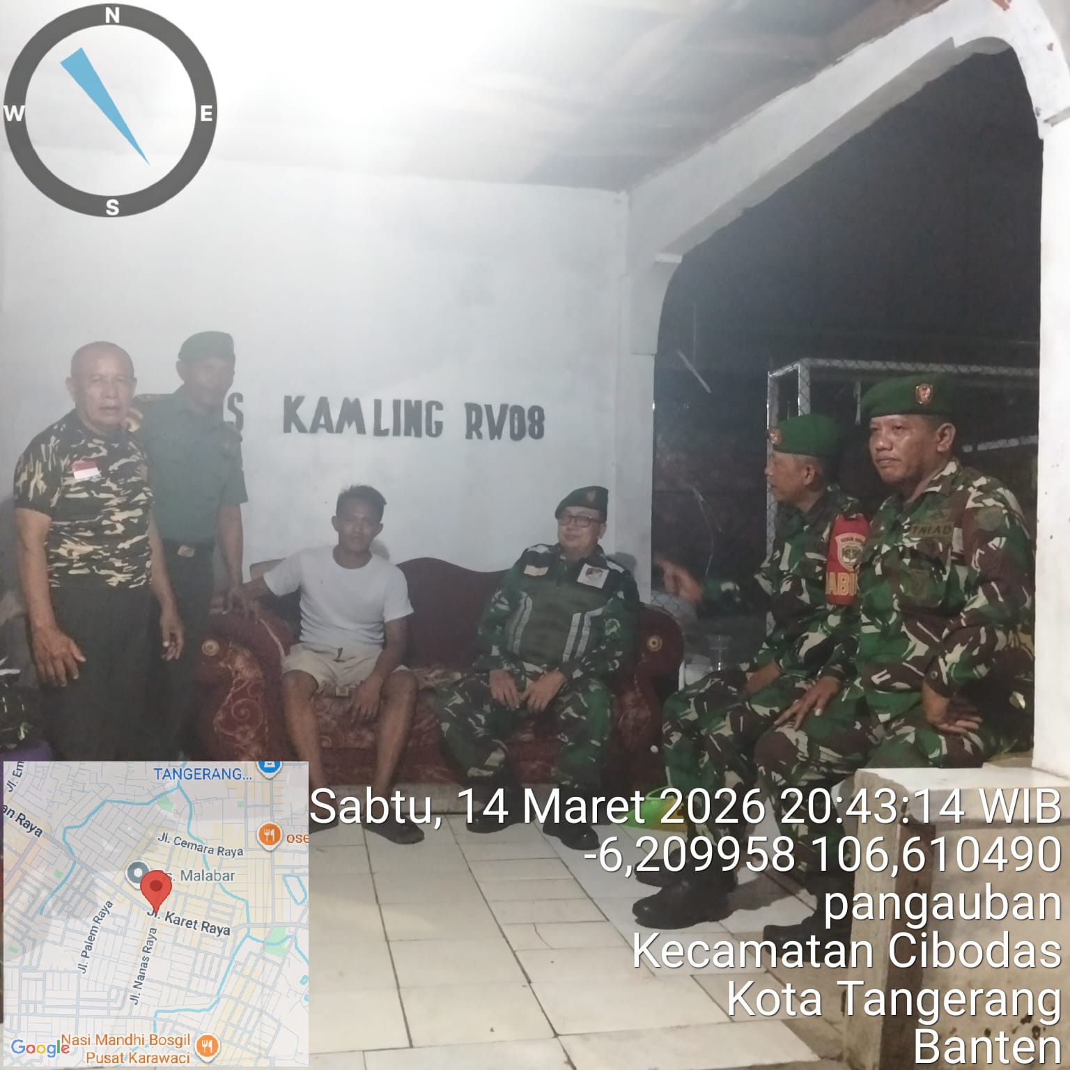 Jurnalline.com, Kodam Jaya, Tangerang – Upaya mencegah gangguan Kamtibmas menjelang hari raya idul fitri, Babinsa Koramil 06 Cobodas dan Babinsa Koramil 07 Pondok Aren bersama Komduk gencar melakukan patroli malam/Siskamling di wikayah, Sabtu malam (14/03/2026).
