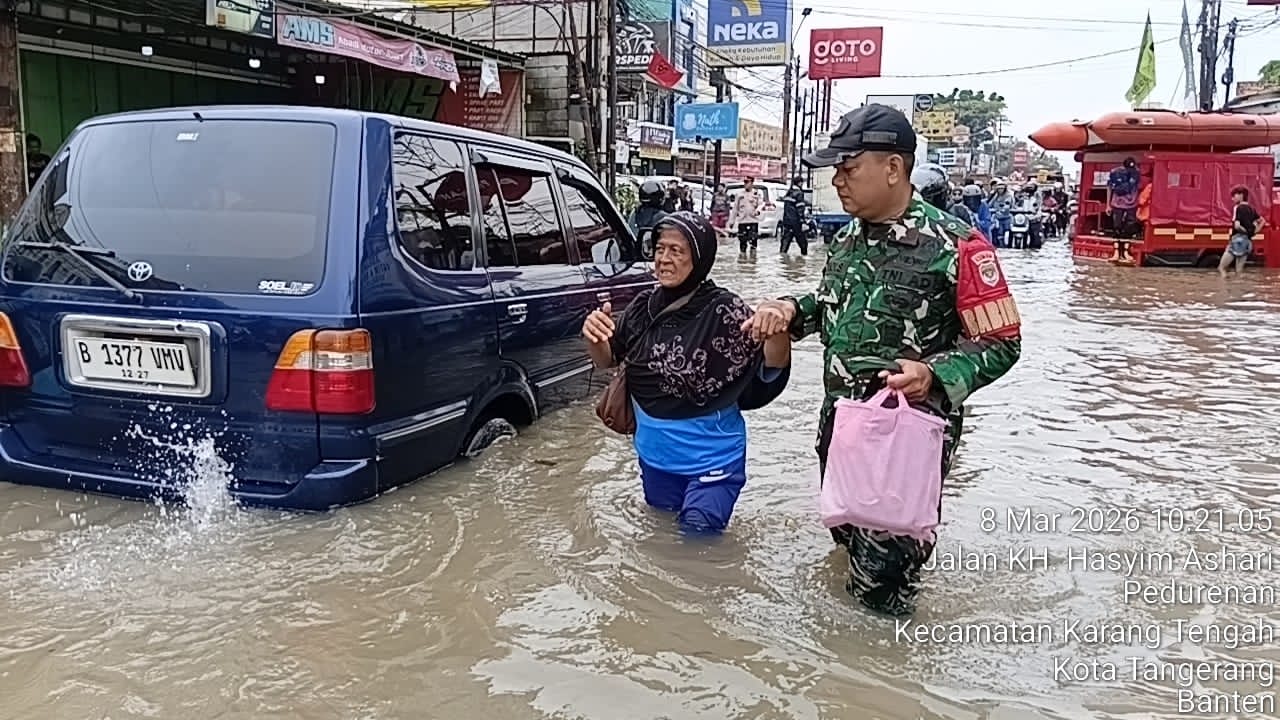 Melihat kondisi tersebut, Babinsa Koramil 07/Pondok Aren, Kodim 0506/Tangerang, langsung turun ke lapangan untuk memantau situasi sekaligus membantu warga yang membutuhkan pertolongan.